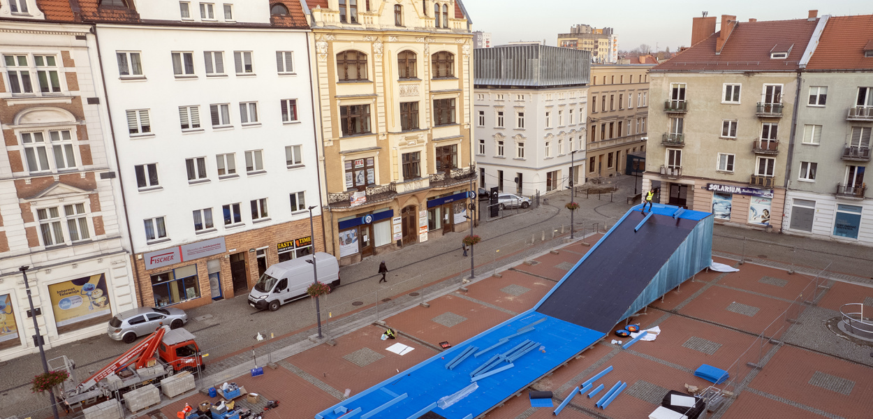 Pierwszą konstrukcję rozstawiono w minioną środę. Wygląda jak rampa, ale na razie nie wiadomo, do czego posłużył - zapewne do zjeżdżania. Na środku naszego najważniejszego placu stanie choinka. Ma mieć 14 metrów, czyli więcej, niż w przeszłości. W ogóle Rynek utonie w bajkowej scenerii wywodzącej się z "Krainy lodu".