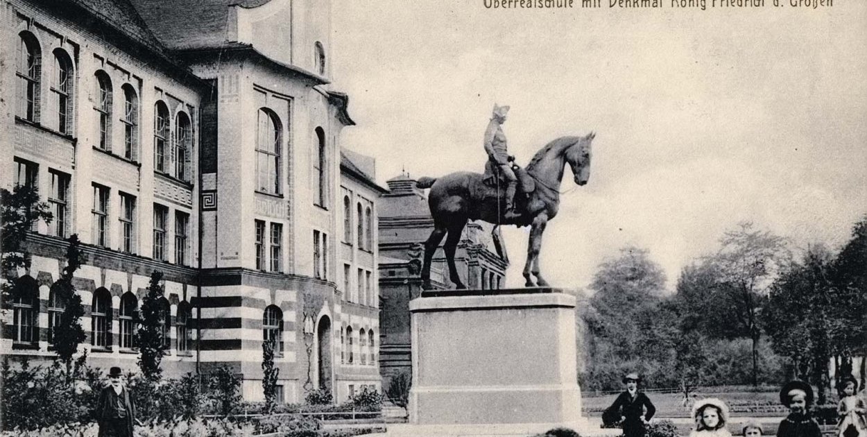 W przedwojennym Bytomiu pomników było więcej. W pierwszym rzędzie stał tu już pomnik z gatunku bardziej monumentalnych, czyli konny. Chodzi o pomnik króla Prus Fryderyka II nazywanego Wielkim. Odsłonięto go 26 listopada 1910 roku na ówczesnym Kaiserplatz - na tle jednego z najpiękniejszych gmachów Bytomia, czyli secesyjnego budynku obecnego IV LO im. Bolesława Chrobrego. Pomnik Fryderyka Wielkiego powstał z inicjatywy władz miejskich na czele z nadburmistrzem Brüningiem, a 50 tysięcy marek na ten cel przekazał bytomski przedsiębiorca, bogacz i zarazem radny miejski Ignatz Hakuba. Stąd też często w publikacjach historycznych pojawia się informacja, że Hakuba był fundatorem tego monumentu. Owszem, był, ale niesamodzielnym, bo cały pomnik kosztował dwa razy więcej - 100 tysięcy marek.