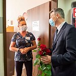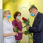 160 czerwonych, pięknych róż rozdał pielęgniarkom w dniu ich święta prezydenta naszego miasta Mariusz Wołosz.