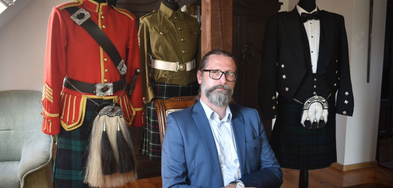 To, co potocznie nazywamy szkocką spódniczką jest w rzeczywistości kiltem - tradycyjnym męskim strojem Szkotów. Na uszycie ośmiojardowego kiltu potrzeba ponad 7 metrów wełnianego materiału, a oryginalny kilt - w tej najbardziej ekskluzywnej wersji - kosztuje nawet kilkaset funtów. Karol Kordyka w takim stroju czuje się znakomicie - nawet na własny ślub założył outfit wieczorowy, czyli w komplet szkockiego ubioru: kilt i marynarkę typu Prince Charlie.