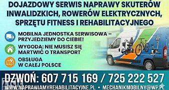 Promuj ogłoszenieDojazdowy serwis naprawy skuterów inwalidzkich Shoprider, rowerów trójkołowych, rowerów elektrycznych, sprzętu rehabilitacyjnego, sprzętu fitness oraz rotorów medycznych www.naprawiamyrehabilitacyjne.pl Dojazdowy Serwis Naprawy to ... czytaj więcej