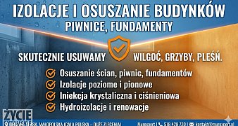 Promuj ogłoszenieBorykasz się z wilgocią w piwnicy, fundamentach lub ścianach? Skutecznie rozwiążemy Twój problem - od osuszania poprzez iniekcję krystaliczną, przez ... czytaj więcej