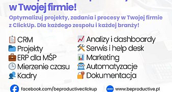Promuj ogłoszeniePomagam firmom we wdrożeniu systemu ClickUp do zarządzania projektami, zadaniami oraz procesami biznesowymi. ClickUp może pełnić rolę systemu CRM, narzędzia ... czytaj więcej